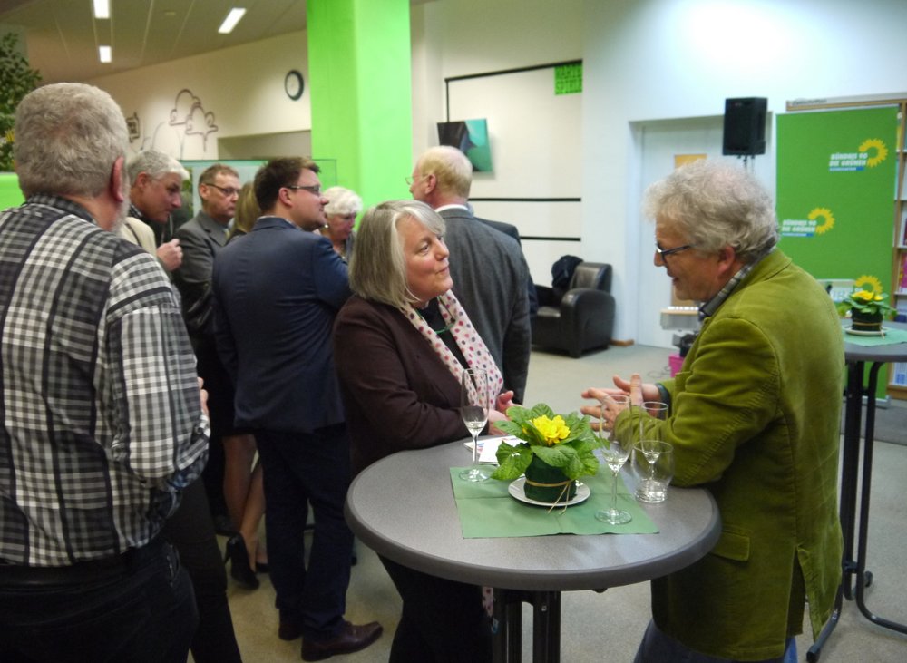 Der gemeinsame Neujahrsempfang der grünen Bezirkstagsfraktion und der Kreisverbände Kaiserslautern-Stadt und -Land war in diesem Jahr gut besucht. Am 16. Januar kamen in der Pfalzbibliothek Gäste aus vielen politischen und gesellschaftlichen Richtungen zusammen, um sich bei einem Glas Sekt und Gebäck über Themen des vergangenen und des neuen Jahres auszutauschen.