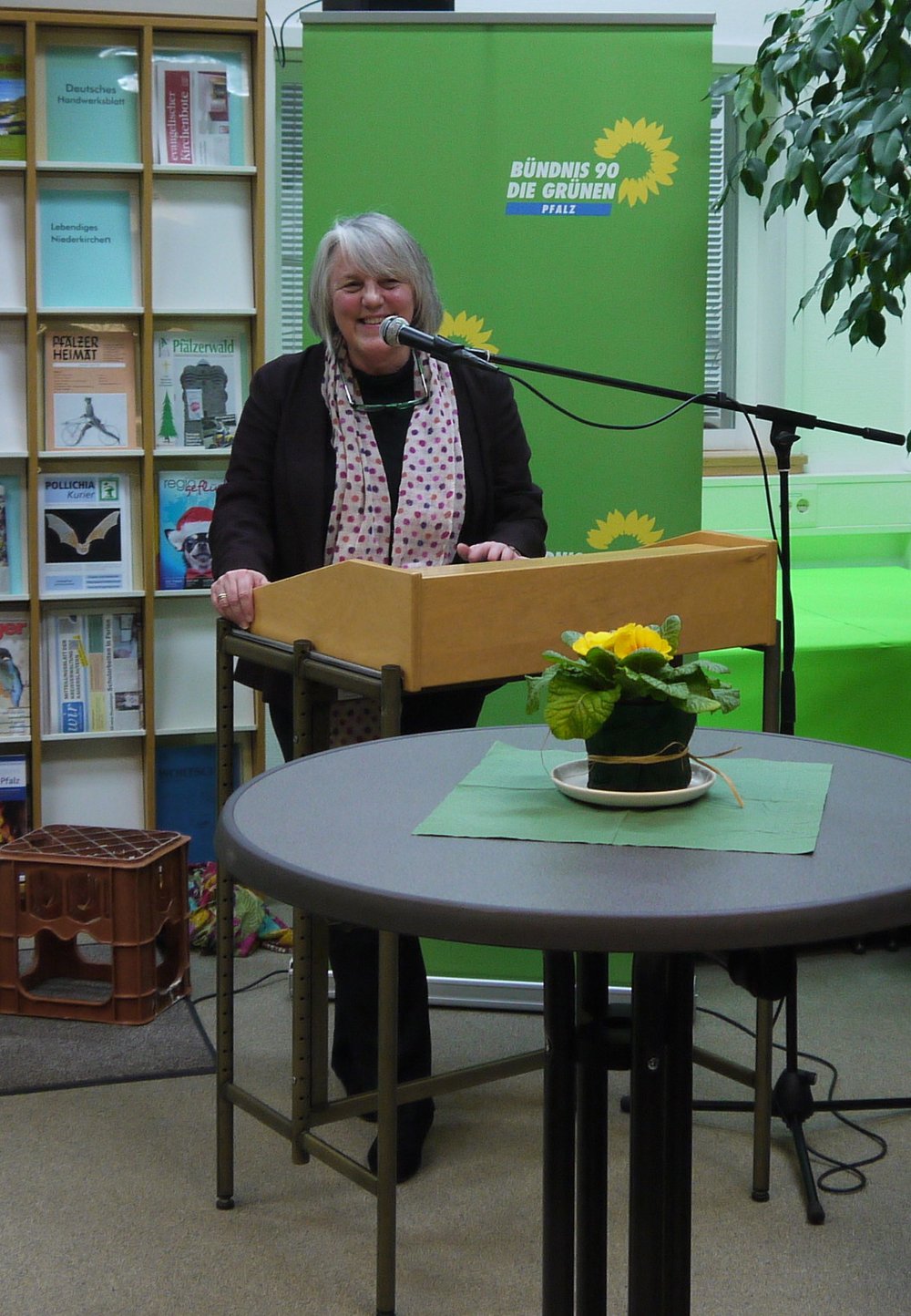 Hauptrednerin des Abends war die bildungs- und kulturpolitische Sprecherin der GRÜNEN Landtagsfraktion, Ruth Ratter, mit dem Thema Inklusion, einem vielschichtigen und viel diskutierten Thema im Land. In weiteren Redebeiträgen sprachen Stefan Thome (Vorstandssprecher KL-Stadt), Joachim Färber (Beigeordneter der Stadt) und Jochen Marwede (Kreistagsfraktion KL-Land) unter anderem die aktuelle Flüchtlingssituation an, die auch die Region Kaiserslautern in Zukunft vor große Aufgaben stellt.