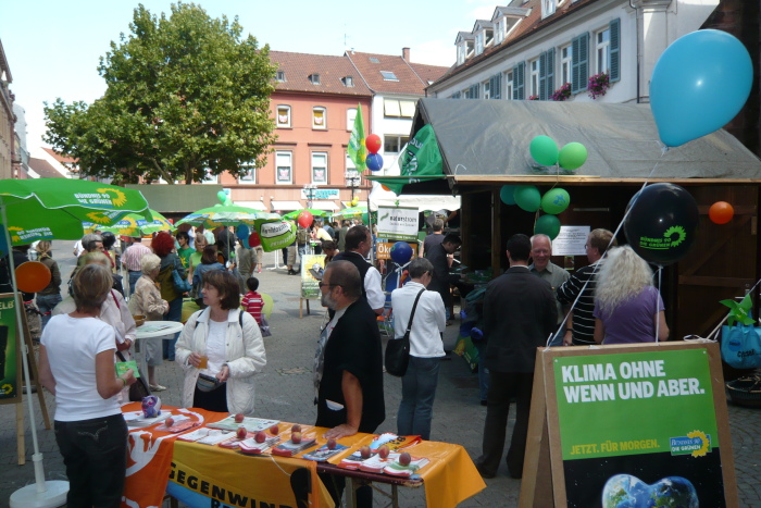 Der Stargast des Grünen Stadtfestes war zweifellos Fritz Kuhn, seit 2005 Vorsitzender der Bundestagsfraktion. In einer mitreißenden Rede spannte der den Bogen von der Wirtschafts- über die Bildungspolitik bis hin zum urgrünen Thema Energie und Umwelt, und er machte eindringlich klar, dass es keine Alternative zum Ausstieg aus der Atomenergie gibt und dass keine neuen Kohlekraftwerke gebaut werden dürfen, wenn die Erderwärmung bis 2050 unter der kritischen Grenze von 2 °C bleiben soll. Mit Einsparungen, Effizienzsteigerung und erneuerbaren Energien sei der geforderte deutsche Beitrag zu diesem Ziel sogar deutlich zu übertreffen.