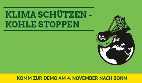 Der GRÜNE Kreisverband Kaiserslautern fährt am Samstag zur Großdemonstration zur Weltklimakonferenz nach Bonn. Verschiedene Organisationen wie BUND, NABU, Greenpeace, Naturfreunde und WWF haben unter dem Motto „Klima schützen – Kohle stoppen!“ dazu aufgerufen.