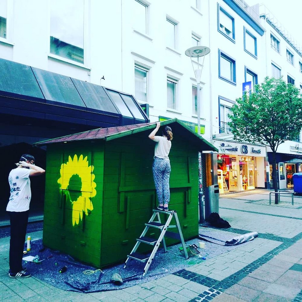 Gemeinsam mit der Grünen Jugend Kaiserslautern haben wir am Dienstag, den 23. April unsere Wahlkampfhütte in der Innenstadt Ecke Schneiderstraße/Marktstraße aufgebaut und bemalen lassen. Die Eröffnung findet am Samstag, den 27. April ab 10 Uhr statt. Anschließend wird die Hütte bis zu den Wahlen am 26. Mai immer dienstags und samstags sowie zu besonderen Anlässen besetzt sein.