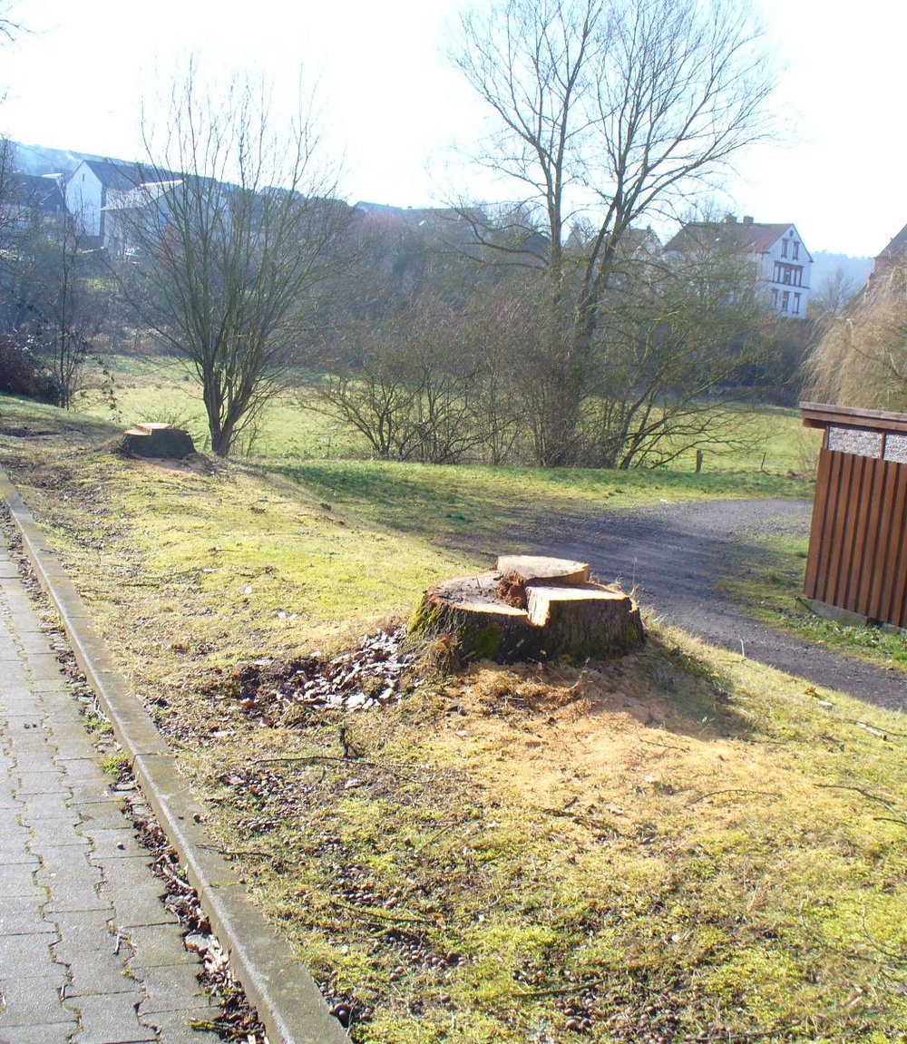 Der Vorsitzende des Ortsverbandes, Andreas Markus, verweist auf die nach seiner Ansicht willkürliche Fällung zweier wertvoller Eichen am Gebäude der Verbandsgemeinde in Otterbach. Die verbliebenen Baumstümpfe wiesen einen Umfang von bis zu 2,40 m auf.