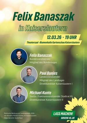 Am 12. März besucht Felix Banaszak Kaiserslautern. Nutze die Gelegenheit für spannende Einblicke, Gespräche und Diskussionen direkt mit dem Bundesvorsitzenden.